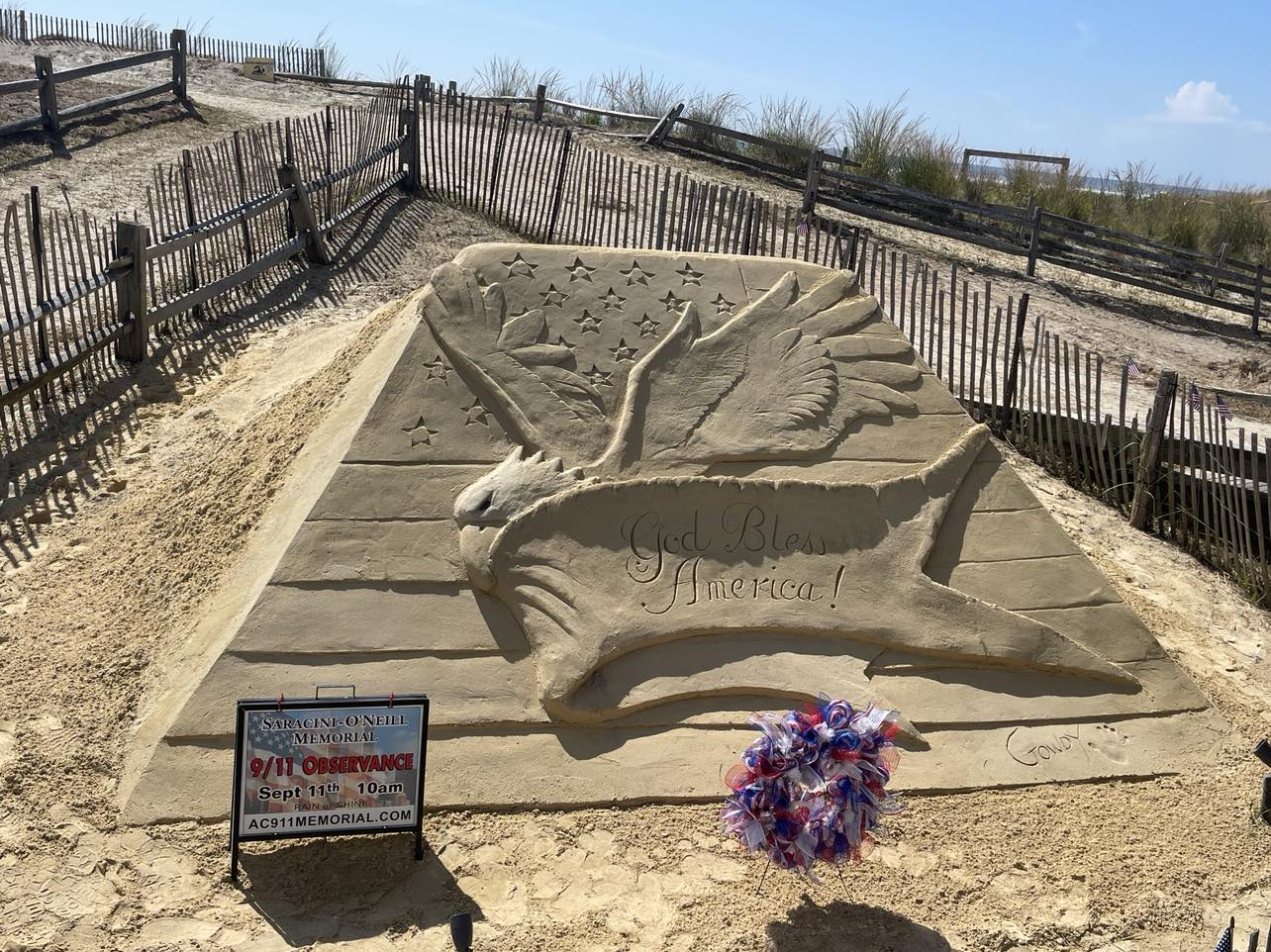 Later those assembled went across the Boardwalk to a special sand sculpture to honor the slain.