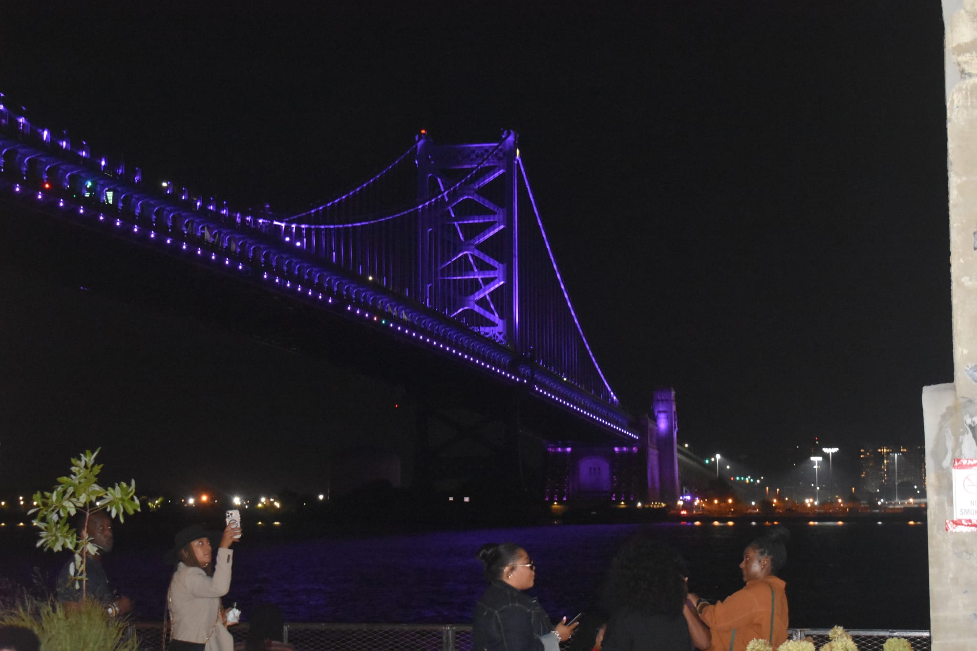If you got tired of walking there were plenty of places to sit. I decided to sit and enjoy a warm summer night's view of the water and the Ben Franklin Bridge.