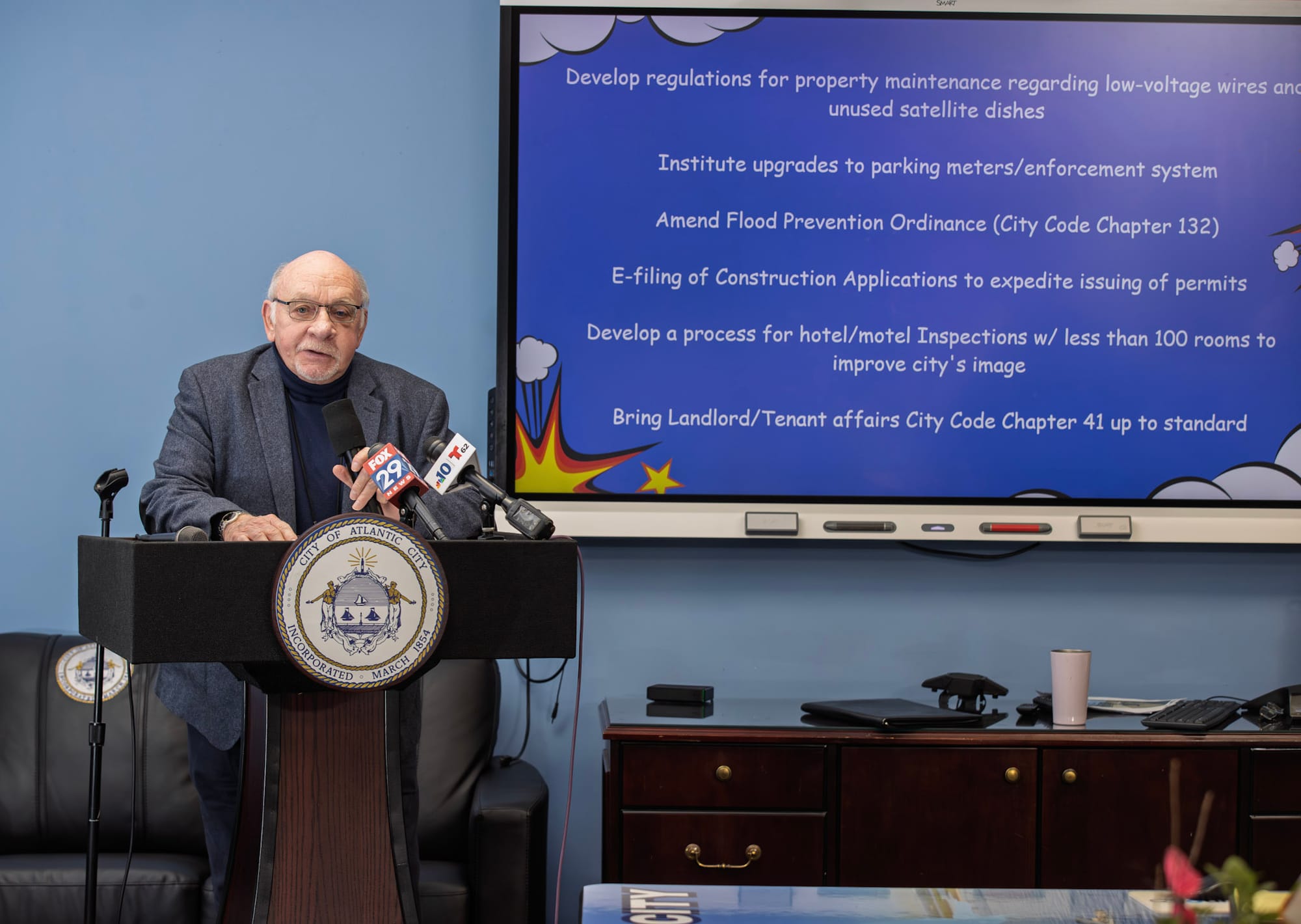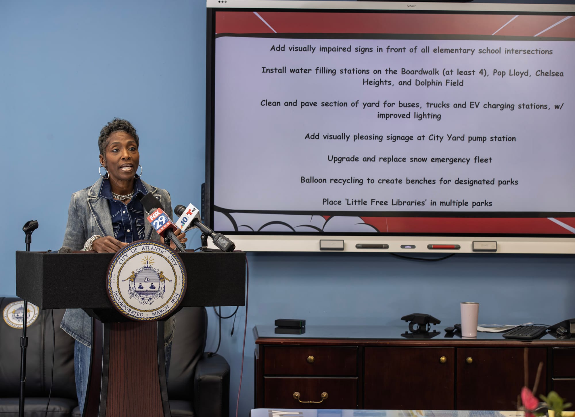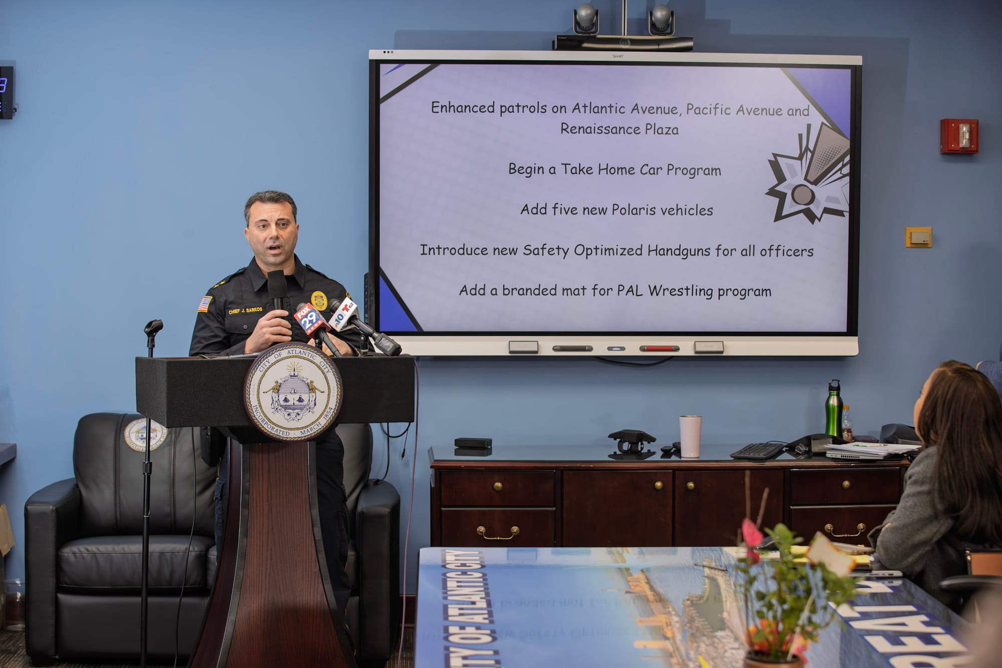 The Atlantic City Fire Department expanded firefighter training throughout the year and acquired a new ladder truck and mini pumper, both expected to enter service soon. Meanwhile, the Department of Public Works upgraded its snow emergency fleet and installed signage to assist visually impaired pedestrians in front of all Atlantic City elementary schools.