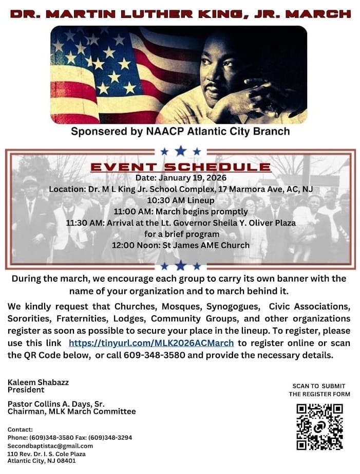 It will be held at 10:30 a.m. People are asked to meet at The Dr. Martin Luther King Jr. School Complex located at 17 Marmora Ave., Atlantic City, NJ.