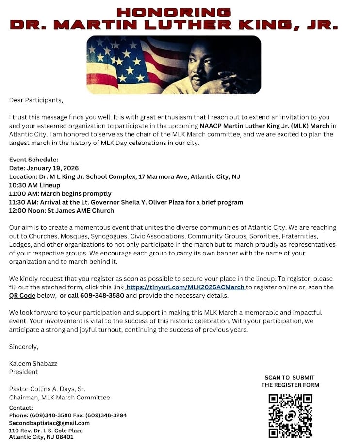 ATLANTIC CITY – The NAACP Atlantic City branch invites the community to the annual remembrance and celebration of Dr. Martin Luther King Jr.