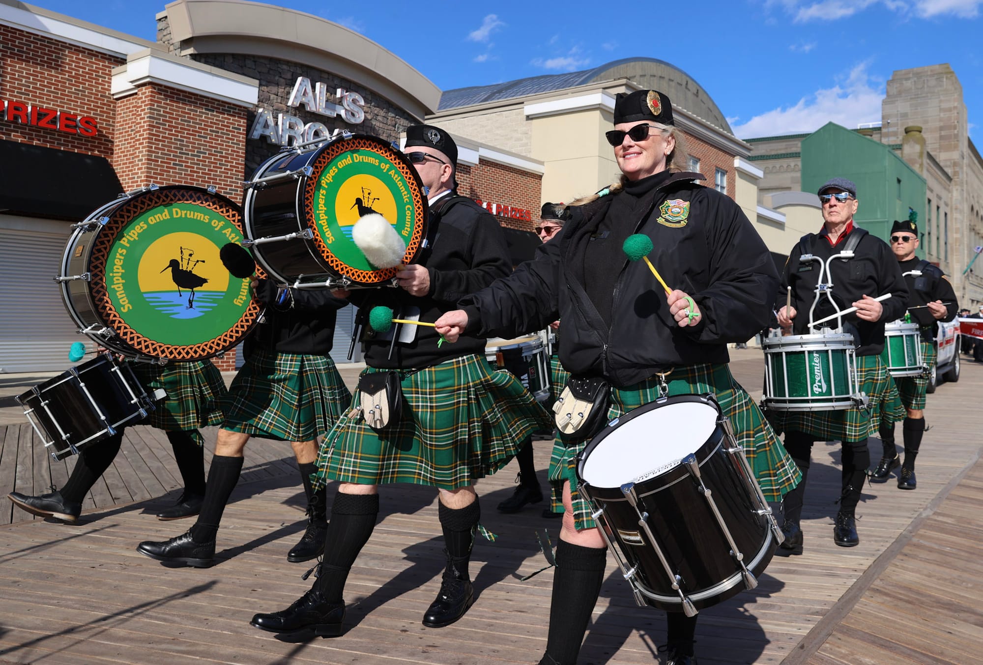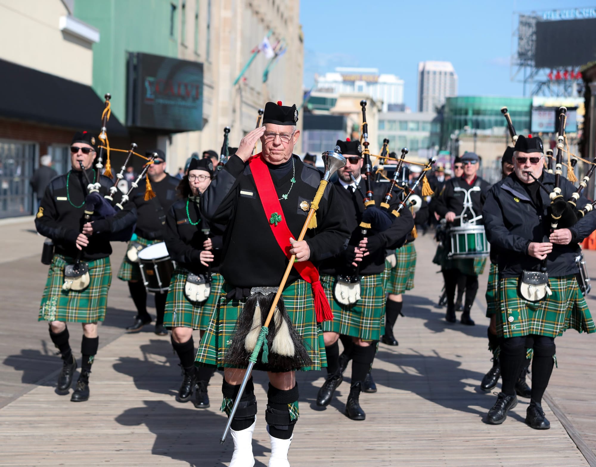 The Atlantic City St. Patrick's Day Parade began at 1:00 PM along the world-famous Boardwalk, featuring a vibrant array of participants, including string bands, pipers, local performers, charitable organizations, and businesses. This year's Grand Marshal was Deputy Chief Bridget Pierce of the Atlantic City Police Department, honored for her dedication to the community.