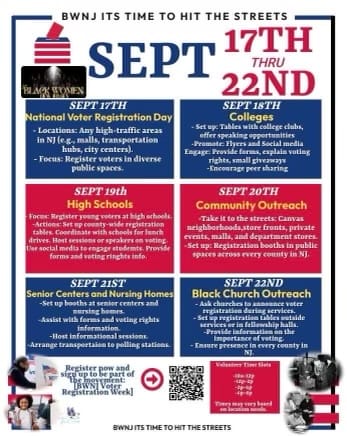 Black Women New Jersey, (BWNJ) an organization more than 15,000-strong across the state, will hold an entire week of voter registration events.