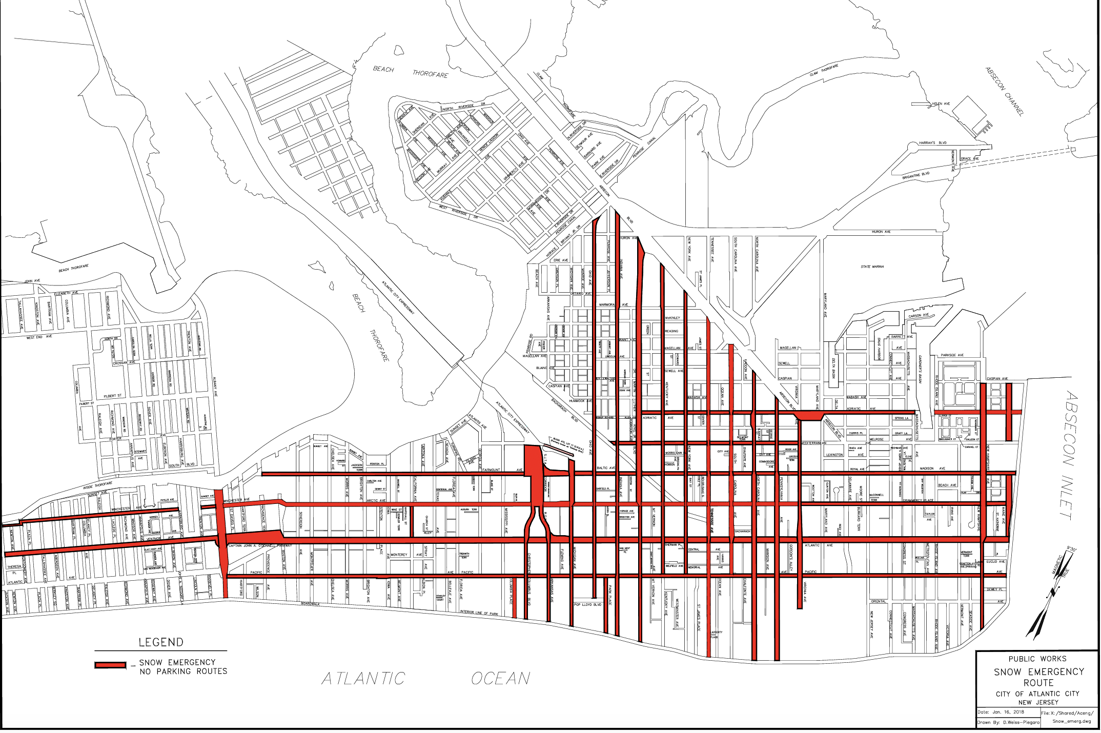Police Chief James Sarkos said the Atlantic City Police Department would enforce the city’s snow emergency parking plan, including towing on designated emergency routes to allow curb-to-curb plowing.