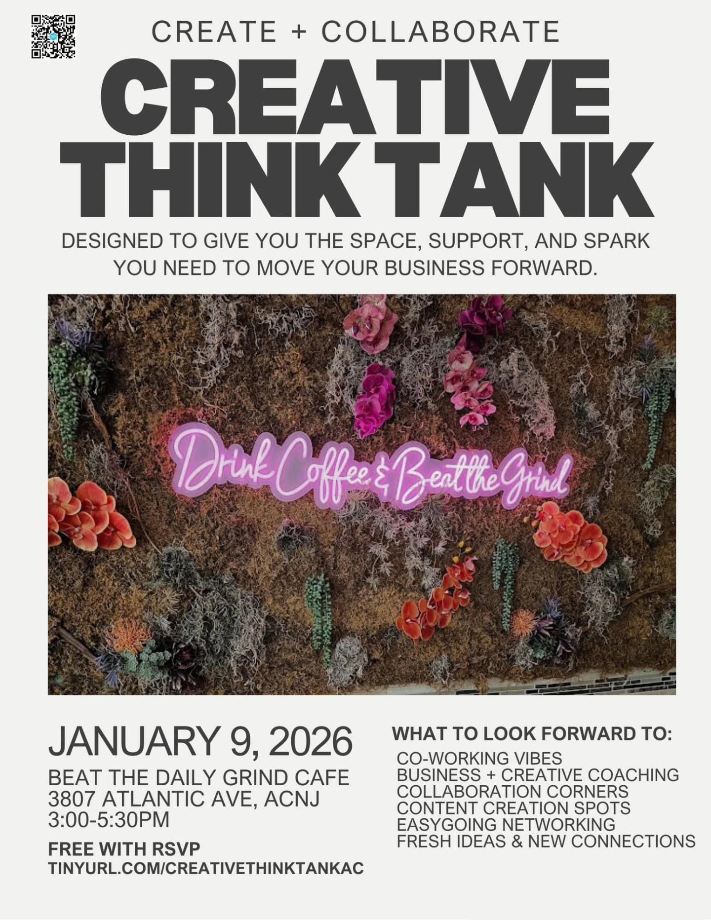 ATLANTIC CITY – On January 9, 2026, the Creative Think Tank will convene at Beat the Daily Grind Cafe offering a collaborative work-and-learn experience designed specifically for creatives, small business owners, and entrepreneurs who crave both inspiration and tangible progress.