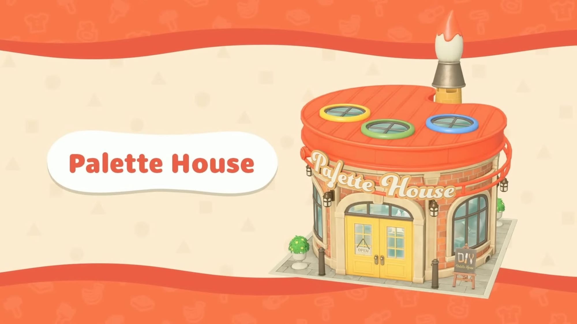 Palette House is the best shop for creative minds to flourish because you can practically make anything you want. This includes TV shows, clothes, latte art, houses, and the dog you’ve always wanted! You can even change the building designs on your island to make them fit any theme you want. The possibilities are endless!
