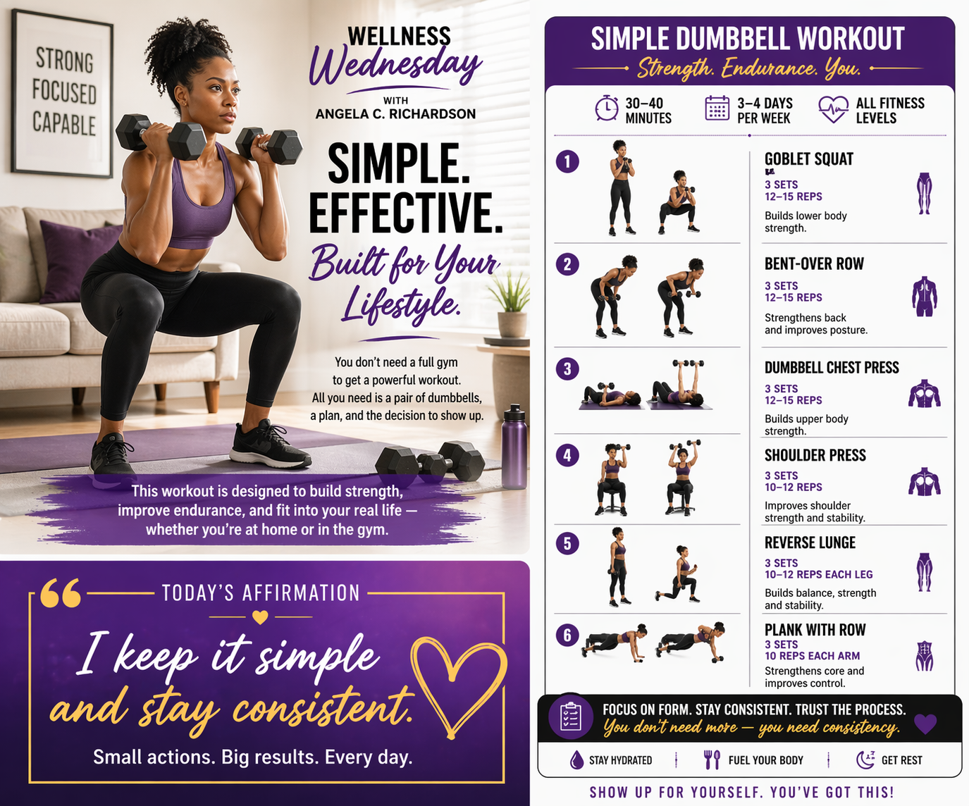 Angela C. Richardson shares a practical, lifestyle-friendly workout plan designed to build strength, boost endurance, and fit into your daily routine—no gym required.