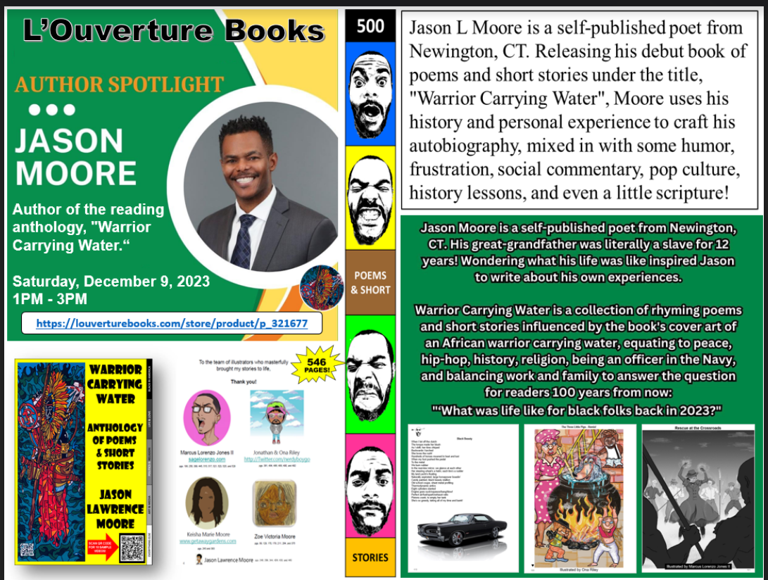 Jason Lawrence Moore will share his inspiration behind writing and publishing his book as well as signing copies from 1 p.m.- 3 p.m. Jason is visiting from Connecticut, so we want to ensure an attentive audience. There will be door prizes for all who attend. (RSVPs appreciated.) And as a bonus, all children's books will be BOGO!