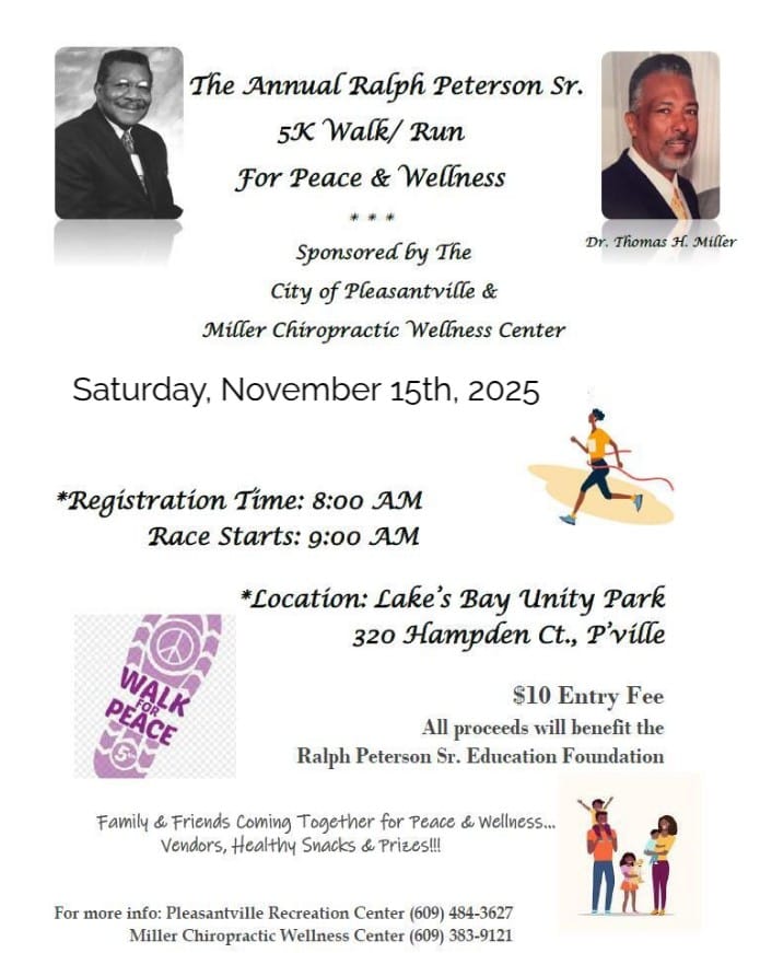PLEASANTVILLE – The Annual Ralph Peterson Sr. 5 K Walk/Run for Peace & Wellness is back.